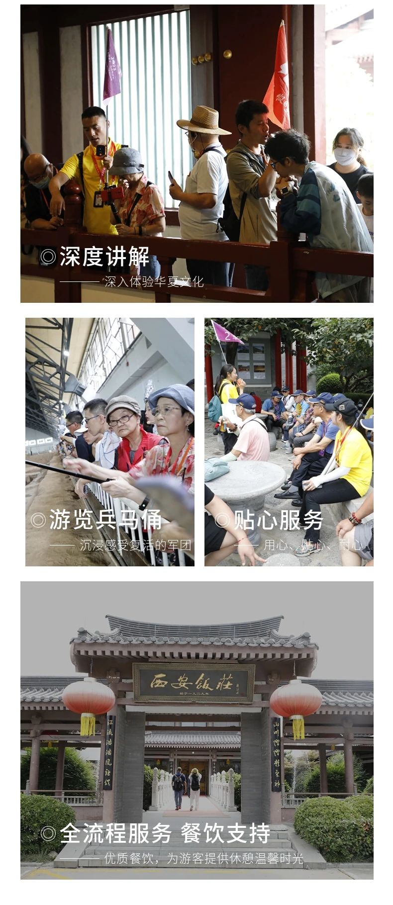 共話周秦漢唐,感悟中華燦爛文明。西安中旅還為臺灣游客精心設(shè)計了為期7天的人文景區(qū)游覽活動,先后前往法門寺、乾陵、華清宮、兵馬俑、大唐不夜城等地,讓臺灣同胞在濃厚的民俗風(fēng)情、特色美食與歷史文化中感受兩岸一衣帶水的深厚情懷。