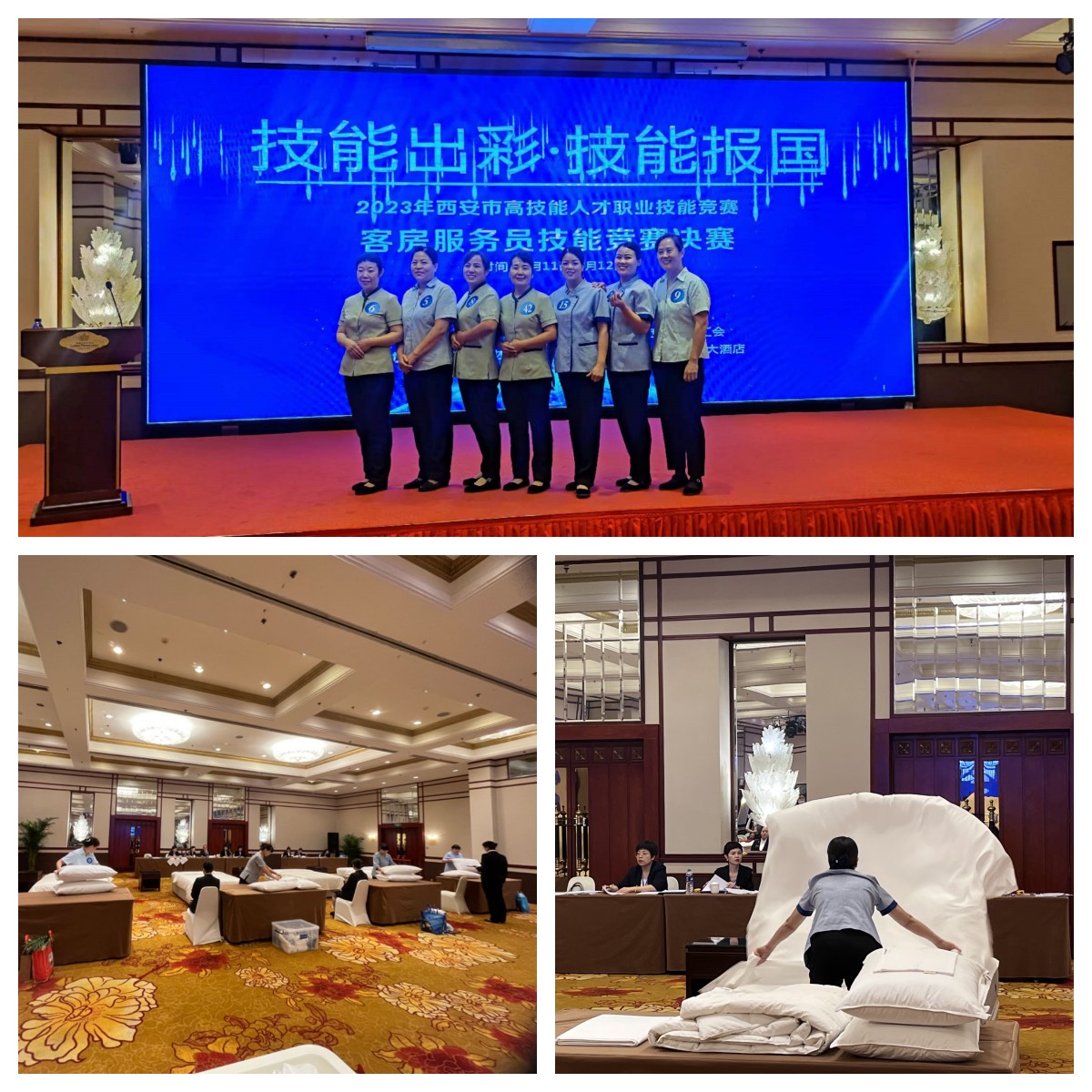 “2023年西安市高技能人才職業(yè)技能競賽”于9月11日在金花大酒店隆重舉行,此次競賽以“以賽促訓(xùn)、以賽促教、以賽育才”為宗旨,為客房服務(wù)業(yè)提供了一個(gè)精煉業(yè)務(wù)、展示風(fēng)采、學(xué)習(xí)交流的廣闊平臺(tái)。經(jīng)過前期的初賽,西旅股份旗下西旅逸柏、解放飯店、西北大酒店、悅新居民宿4家單位的7名優(yōu)秀選手進(jìn)入本次決賽。