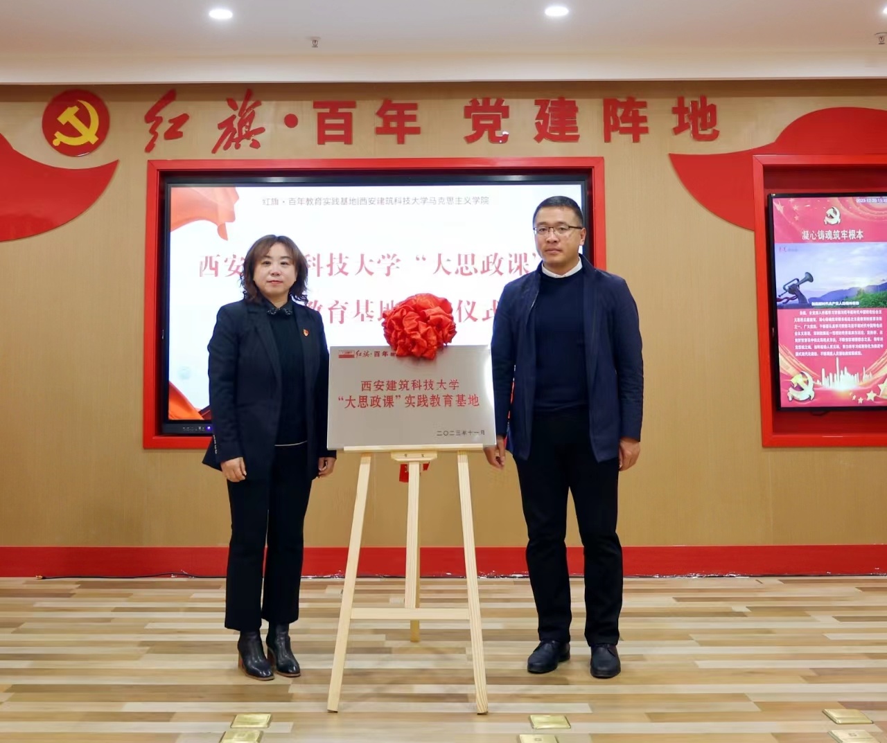 為深入貫徹落實(shí)習(xí)近平總書記關(guān)于“大思政課”的重要指示精神,加快構(gòu)建“大思政課”工作格局,充分發(fā)揮“大思政課”實(shí)踐教學(xué)基地在提高師生綜合素質(zhì)方面的育人效果,12月20日下午,西安建筑科技大學(xué)馬克思主義學(xué)院與西旅股份旗下紅旗?百年教育實(shí)踐基地共建“大思政課”實(shí)踐教育基地揭牌儀式順利舉行。紅旗?百年教育實(shí)踐基地負(fù)責(zé)人徐榮,西安建筑科技大學(xué)馬克思主義學(xué)院黨委書記宋陽一行20余名師生出席此次活動。