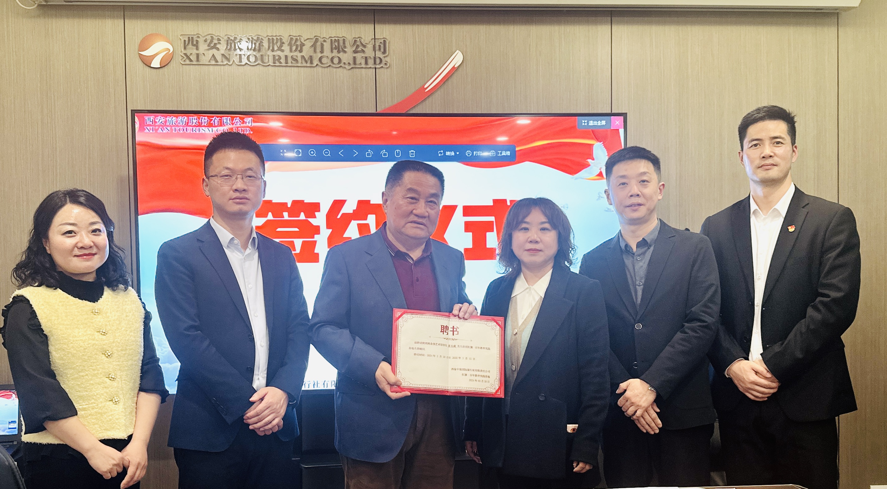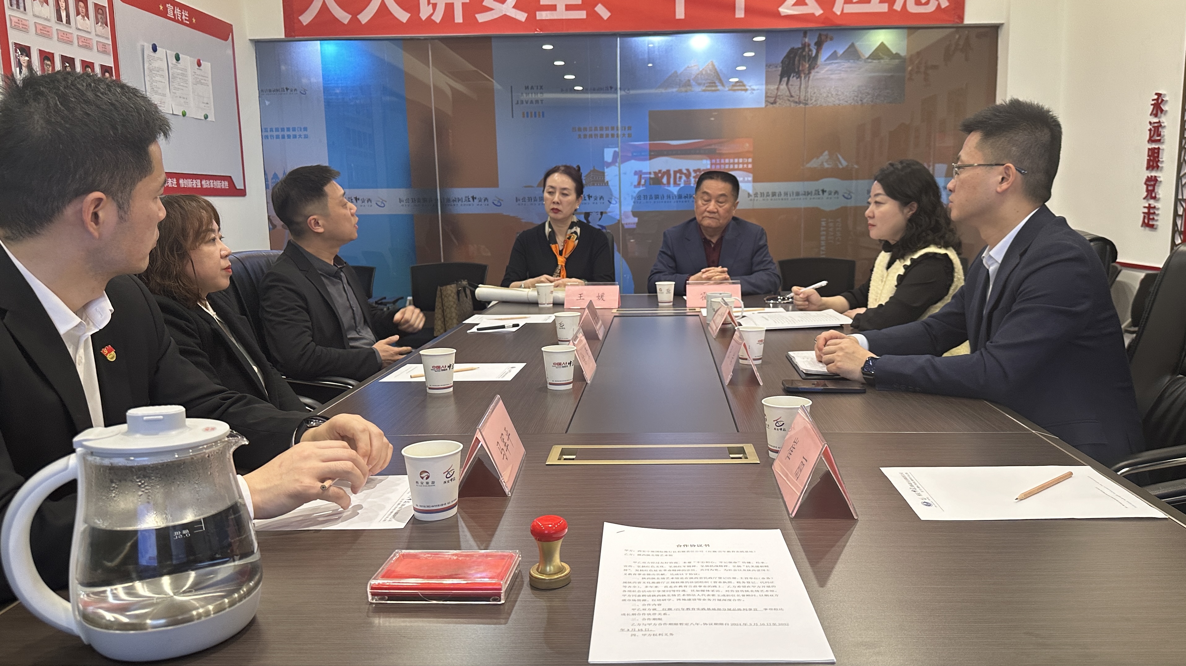 近日,陜西陜北情藝術(shù)館一行到訪西旅股份旗下西安中旅,雙方以紅旗?百年教育實踐基地為基礎(chǔ)平臺,建立了全方位紅色文旅合作關(guān)系,并進(jìn)行現(xiàn)場簽約。西安中旅總經(jīng)理張巖、紅旗?百年教育實踐基地負(fù)責(zé)人徐榮出席本次簽約儀式。