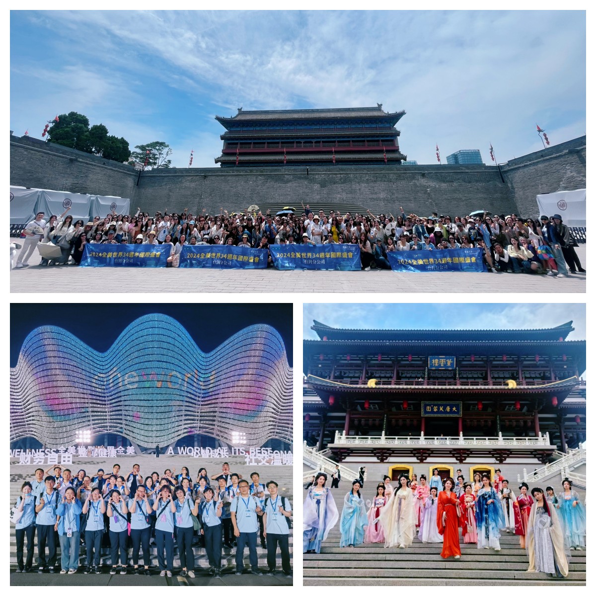 5月中旬,西安海外出境中心聯(lián)合金牌導(dǎo)游服務(wù)中心承接“長(zhǎng)盛久安·世界全美”——全美世界34周年國(guó)際盛會(huì)暨2024臺(tái)灣分公司海外獎(jiǎng)勵(lì)旅游活動(dòng),完成臺(tái)灣地區(qū)近500人會(huì)議會(huì)務(wù)及行程接待工作,并順利在大唐芙蓉園紫云樓舉辦了“臺(tái)灣之夜”唐裝專場(chǎng)晚宴。