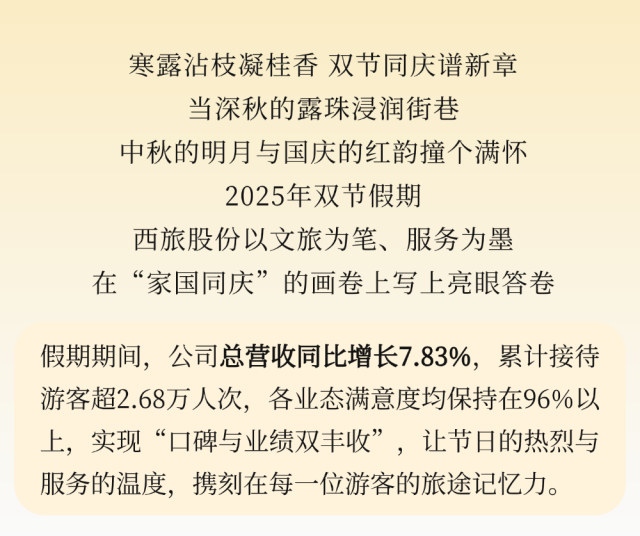 月滿山河慶雙節(jié)!西旅股份以多元文旅點(diǎn)亮“家國(guó)同慶”時(shí)刻