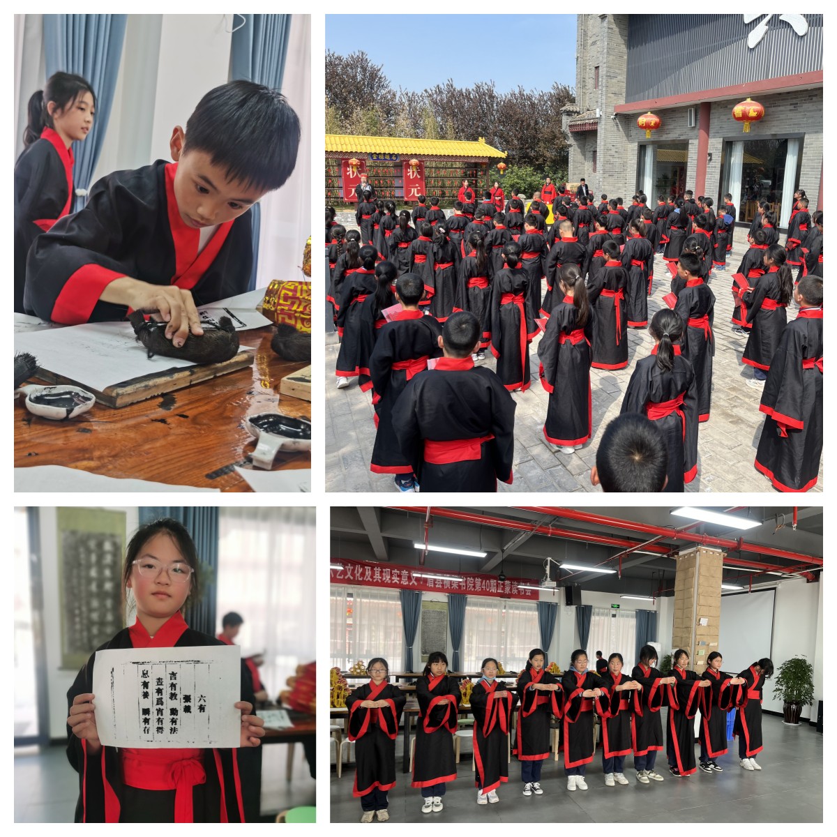 在北宋著名的思想家、哲學(xué)家、教育家、關(guān)學(xué)領(lǐng)袖張載的講學(xué)之地——橫渠書院,同學(xué)了解張載生平經(jīng)歷及其代表著作,深刻領(lǐng)悟關(guān)學(xué)思想,身著傳統(tǒng)漢服舉行拜謁儀式,學(xué)習(xí)古代君子六藝——禮、樂(lè)、射、藝、書、數(shù),在強(qiáng)烈的儀式感和濃郁的文化氛圍中感受中國(guó)傳統(tǒng)文化的魅力。